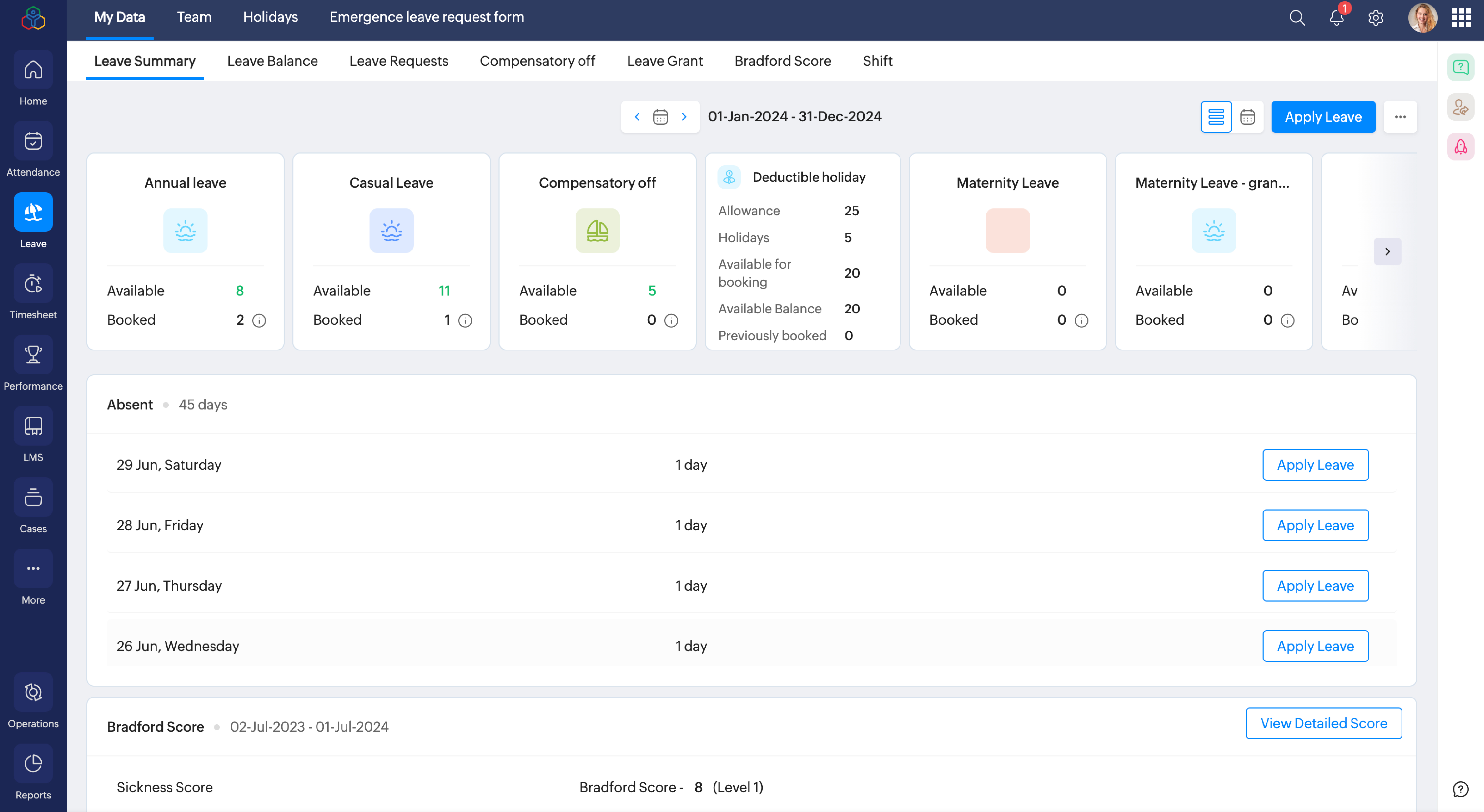 Zoho People umożliwia ewidencję obecności, czasu pracy i absencji w uporządkowany sposób. Dzięki temu firmy lepiej planują zasoby, szybciej identyfikują braki kadrowe i zwiększają efektywność operacyjną.