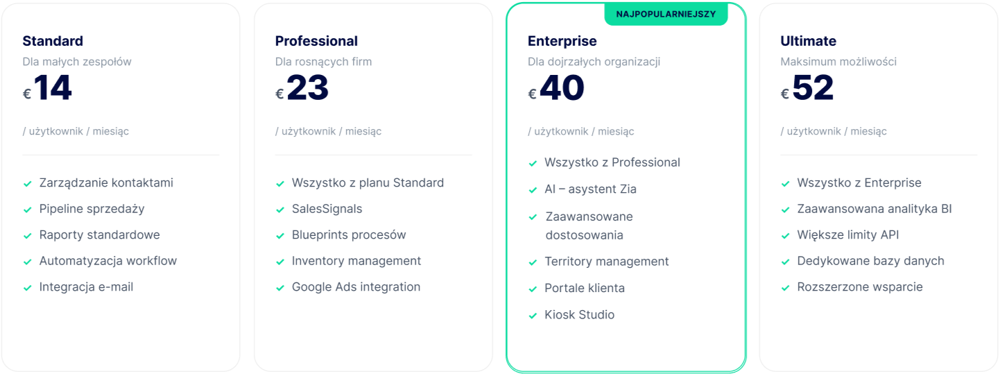 Zoho CRM łączy rozbudowaną funkcjonalność, szeroki ekosystem aplikacji oraz integracje z innymi narzędziami, pozostając jednocześnie rozwiązaniem bardziej dostępnym kosztowo niż wielu konkurentów. Dzięki temu firmy mogą skalować system bez nadmiernych inwestycji.